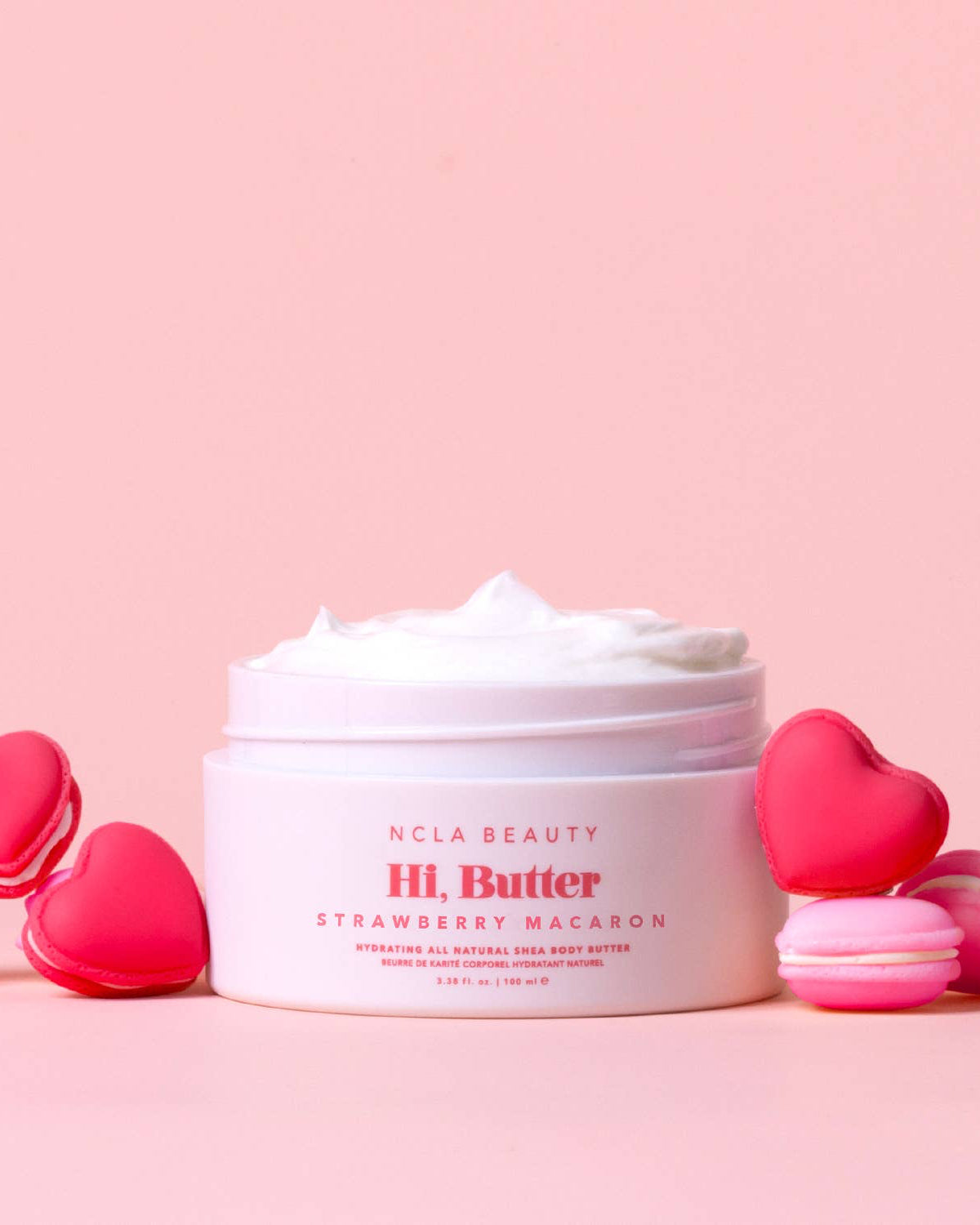 Butter up and glow on. Hi, Butter Strawberry Macaron Body Butter is an ultra-rich, velvety moisturizer that melts into skin, delivering long-lasting hydration with a soft, sweet strawberry scent. Formulated with nourishing superfood ingredients like shea butter, mango butter, and hempseed oil, this all-natural body butter softens, smooths, and improves skin texture while leaving your skin irresistibly touchable.