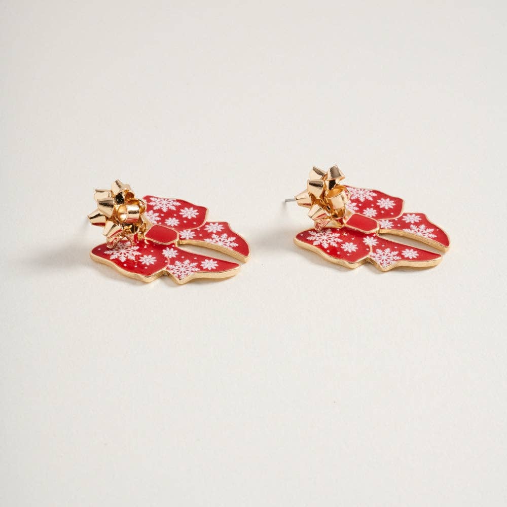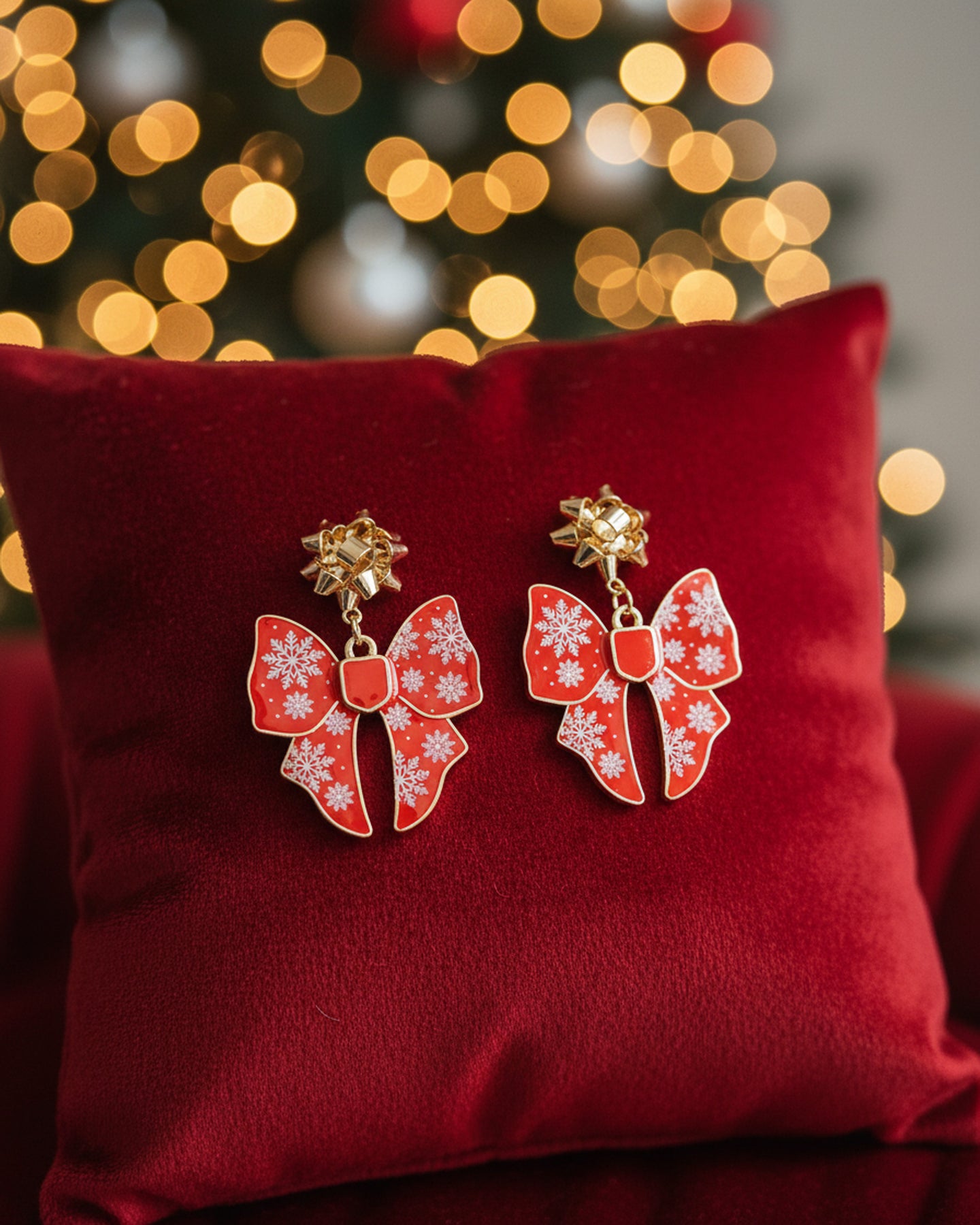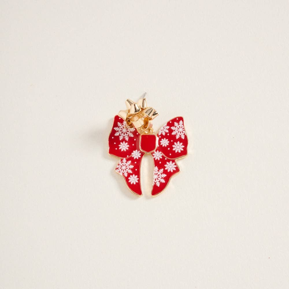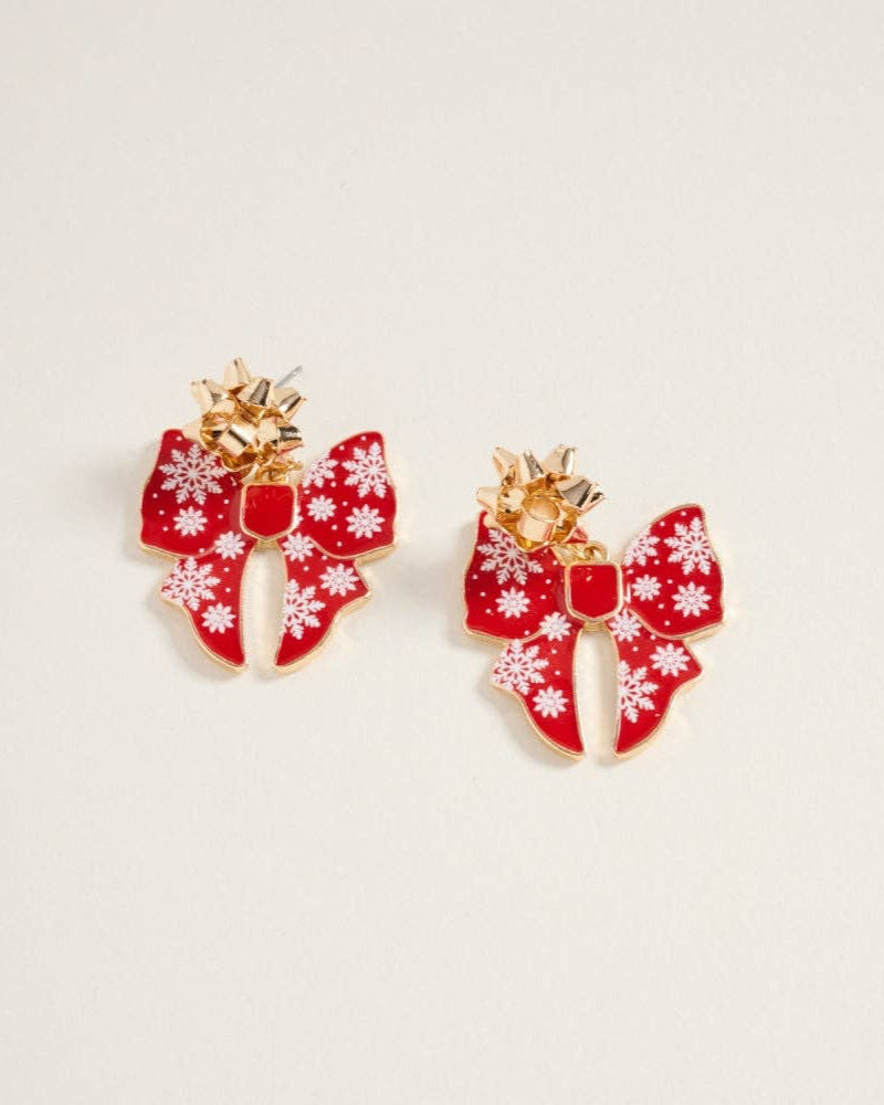 Tiny but mighty festive, these bow earrings bring on the cheer with gold, red, and delicate snowflake details.