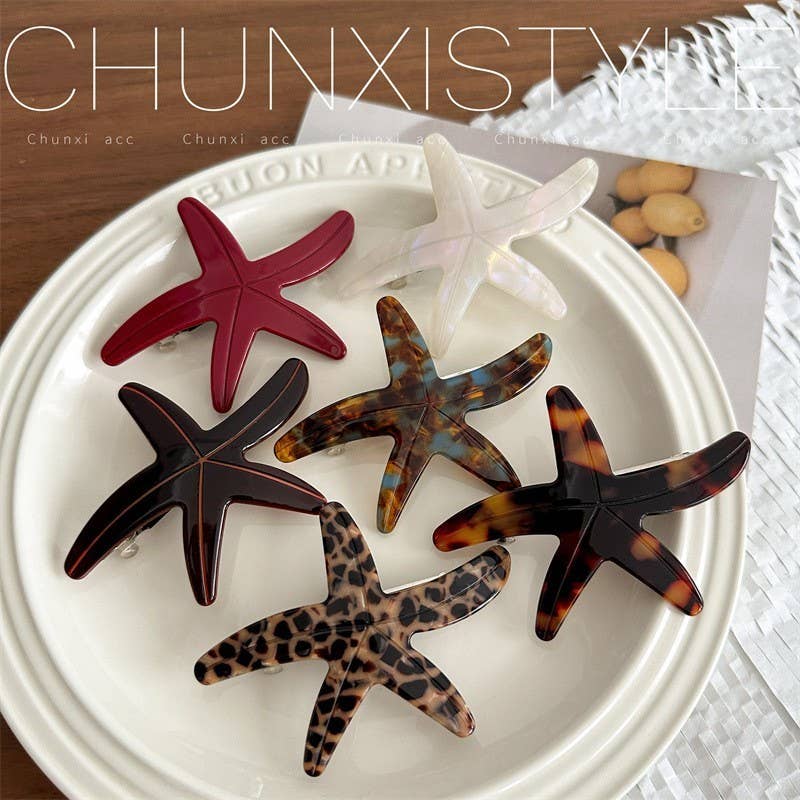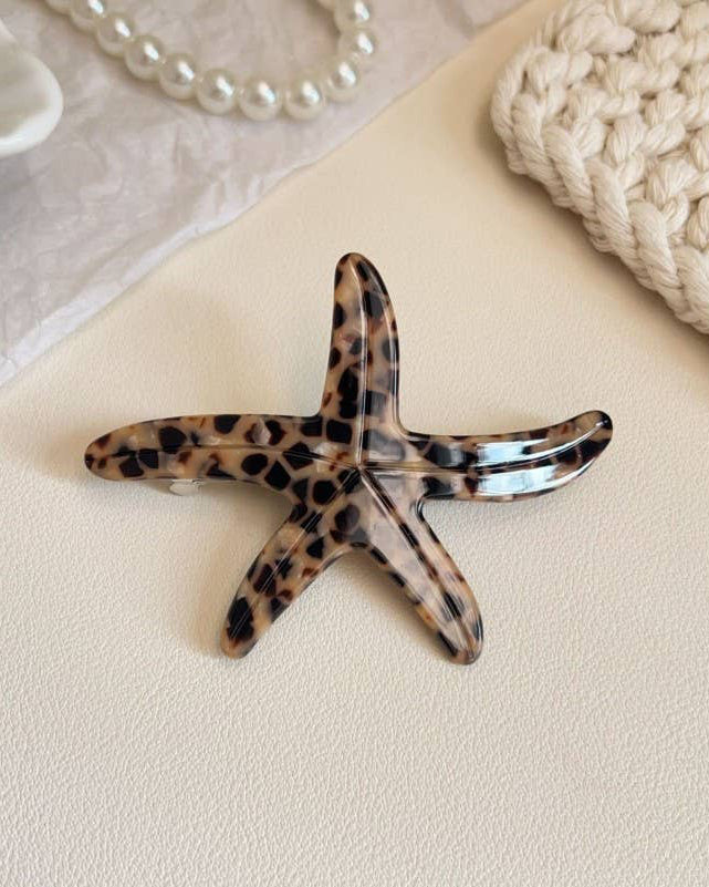 Bold and playful, this leopard-print starfish hair clip combines coastal charm with a fashion-forward twist. Its sturdy construction and eye-catching pattern make it an easy statement piece for elevating casual hairstyles.