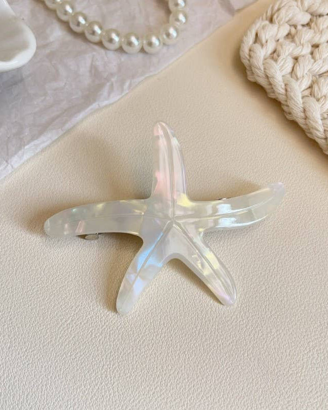 Inspired by seaside style, this starfish hair clip adds a soft, coastal touch to your look. Finished in an elegant off-white tone with a polished metal backing, it’s both functional and decorative—perfect for effortless updos or half-up styles.