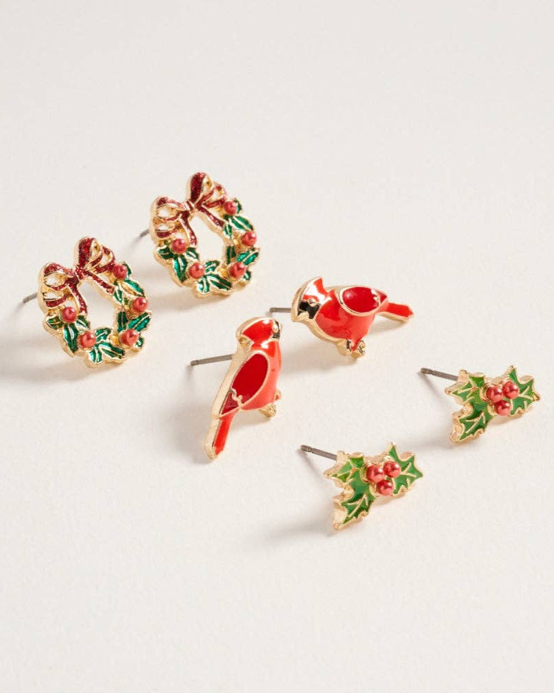 Celebrate the season with a mix of nature-inspired icons in this charming Christmas earring set. Sweet, simple, and perfect for gifting.