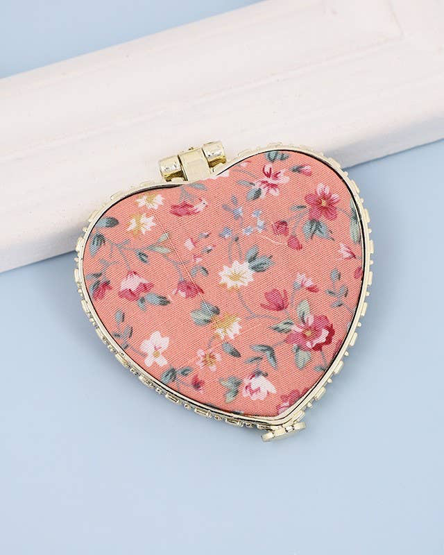 Pretty and portable, this peach floral travel mirror is perfect for quick checks and touch-ups throughout the day. Its compact size and soft fabric exterior make it both functional and delightful to carry.