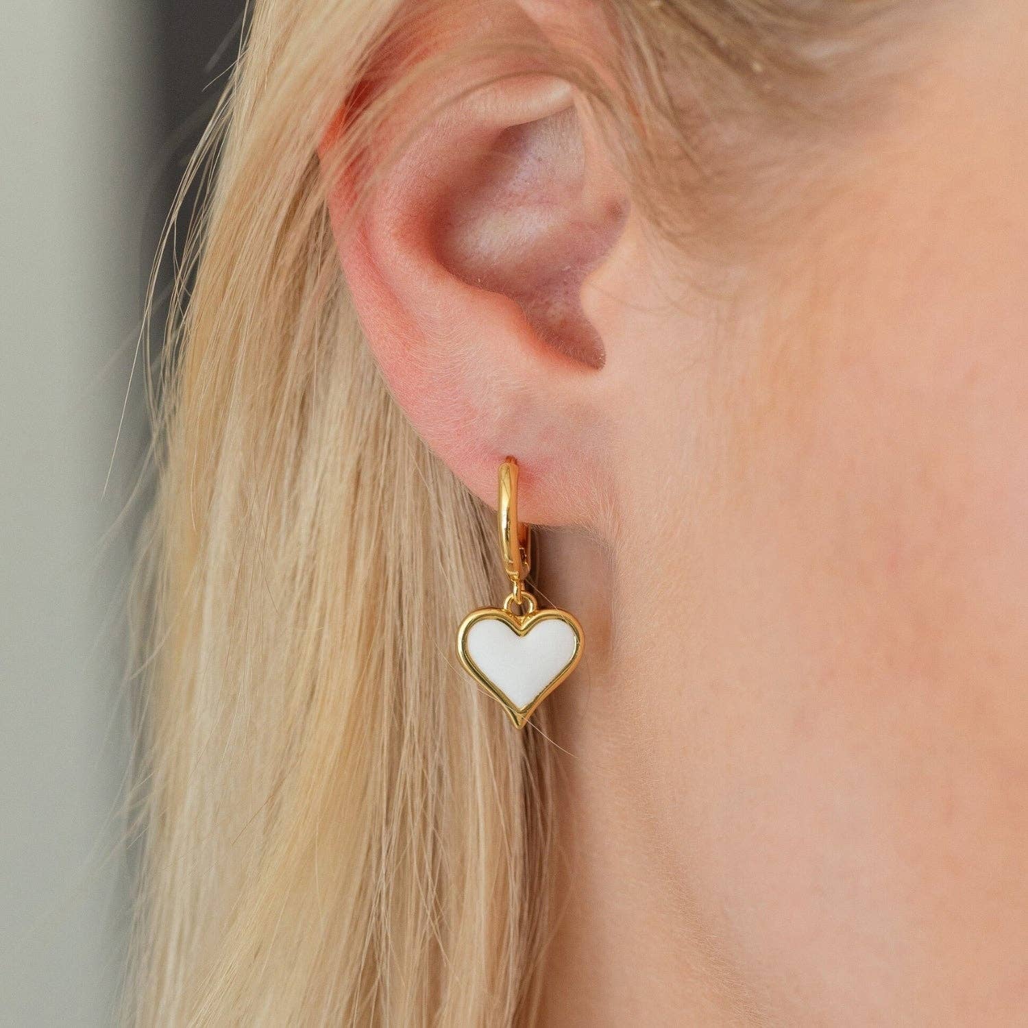 Be the queen of your heart. These colorful heart drop huggies are a fun, easy-to-wear twist on the classic huggie hoop—finished with a bright pink enamel heart that adds the perfect pop of playful charm. They’re lightweight, cheerful, and exactly the kind of earrings that make even a simple outfit feel a little more you.