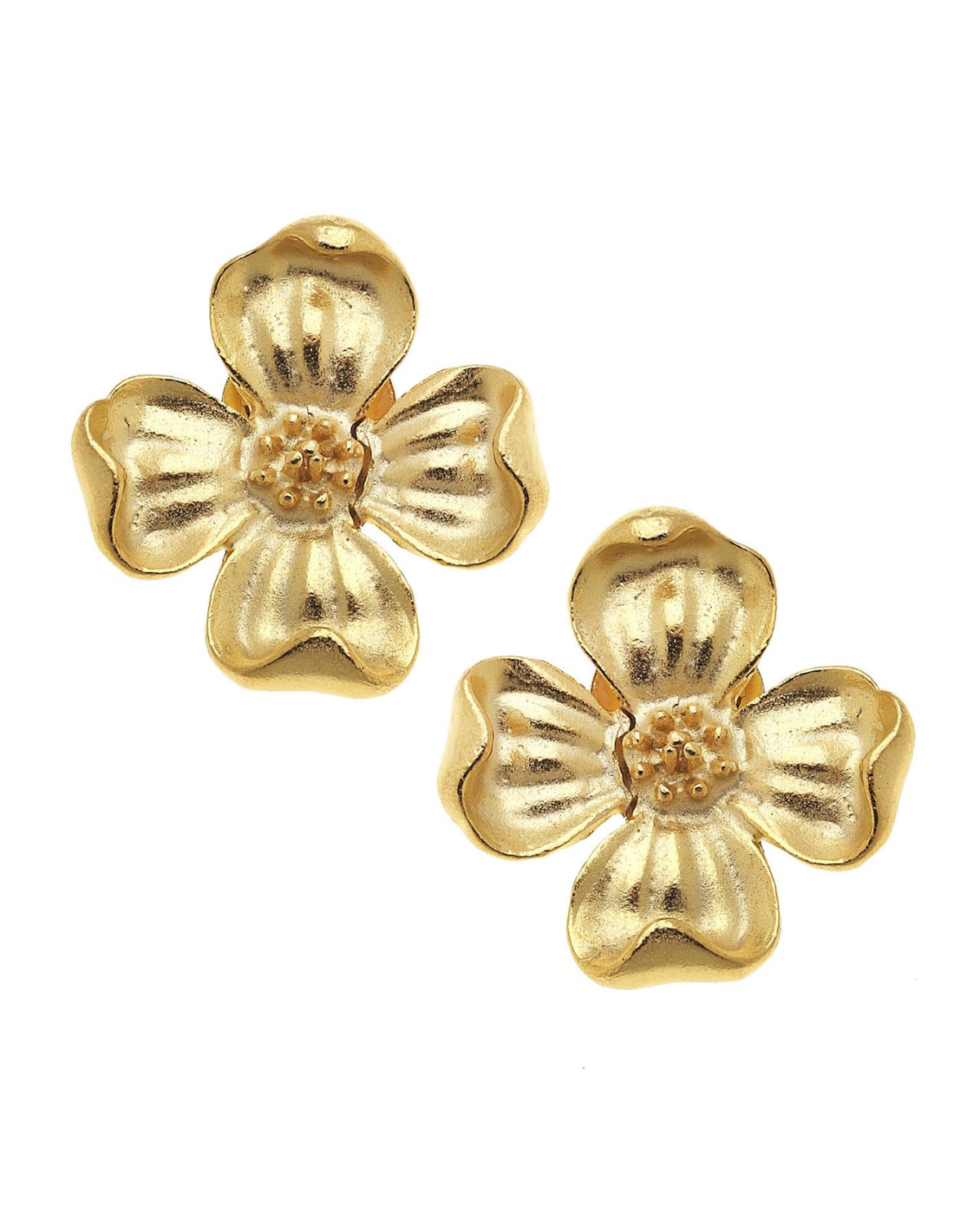 Dogwood Flower Stud Earrings - Gold