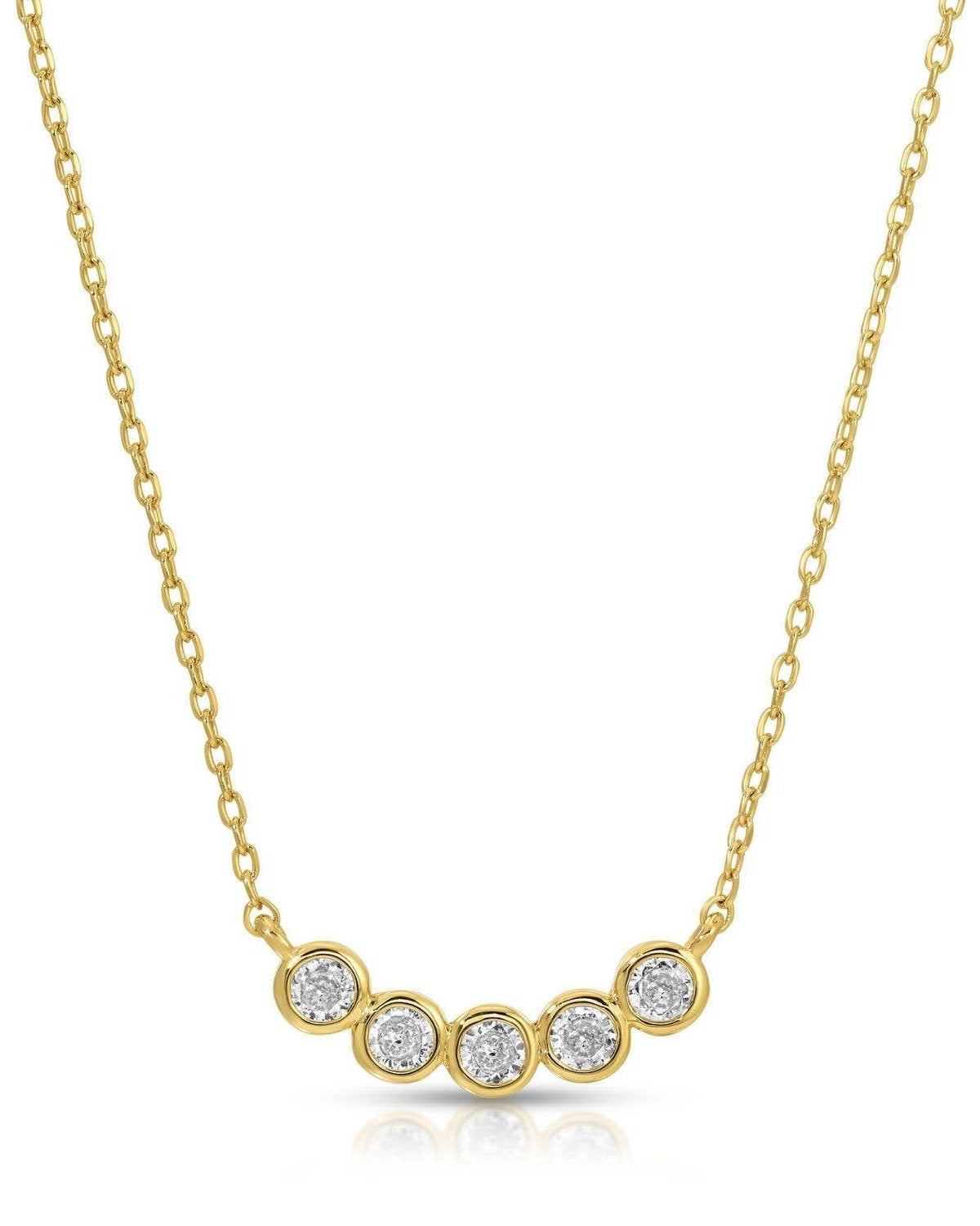 If you love the look of diamonds without the over-the-top vibe, this Faux Multi Diamond Necklace is your easy sparkle fix. Five framed cubic zirconia stones are arranged in a gentle curve that sits beautifully along the neckline, giving your décolletage a polished, luminous glow that works for everyday outfits and dressed-up plans alike.
