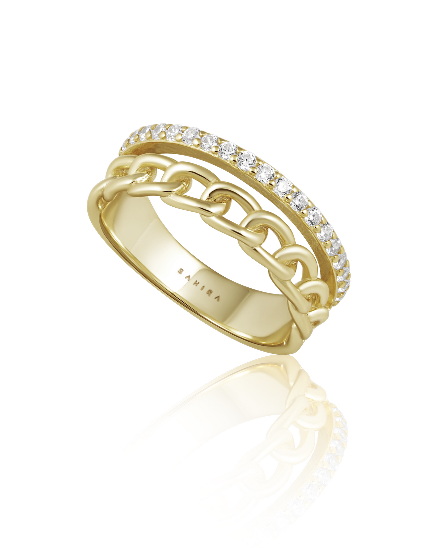Edgy and eye-catching, the Jolene Chain Ring is designed for those who love a bold moment. With its chain-inspired design and subtle CZ sparkle, this piece adds texture and attitude while remaining comfortable enough for everyday wear.