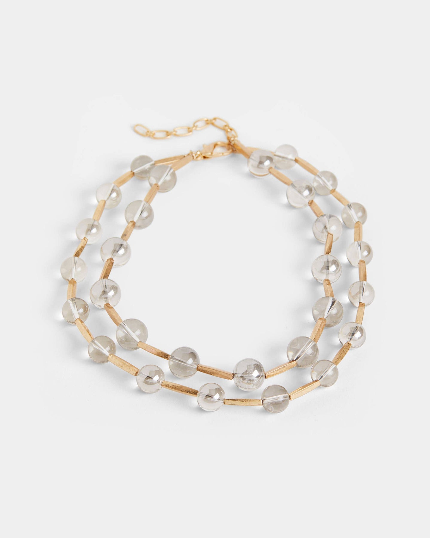 Add a little shimmer to your layers with the Malani Necklace. This two-strand design features delicate beaded accents in a soft grey palette, giving you that effortlessly polished look—perfect with a tee or a dressy blouse.