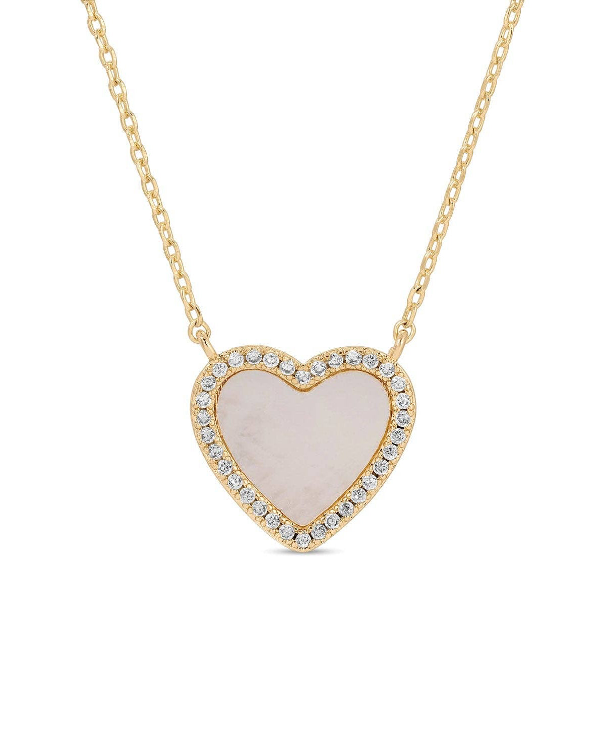 A tiny treasure with heartfelt charm. This necklace features a shell-filled heart framed by a shimmering pavé border—perfect for layering or gifting to someone special.