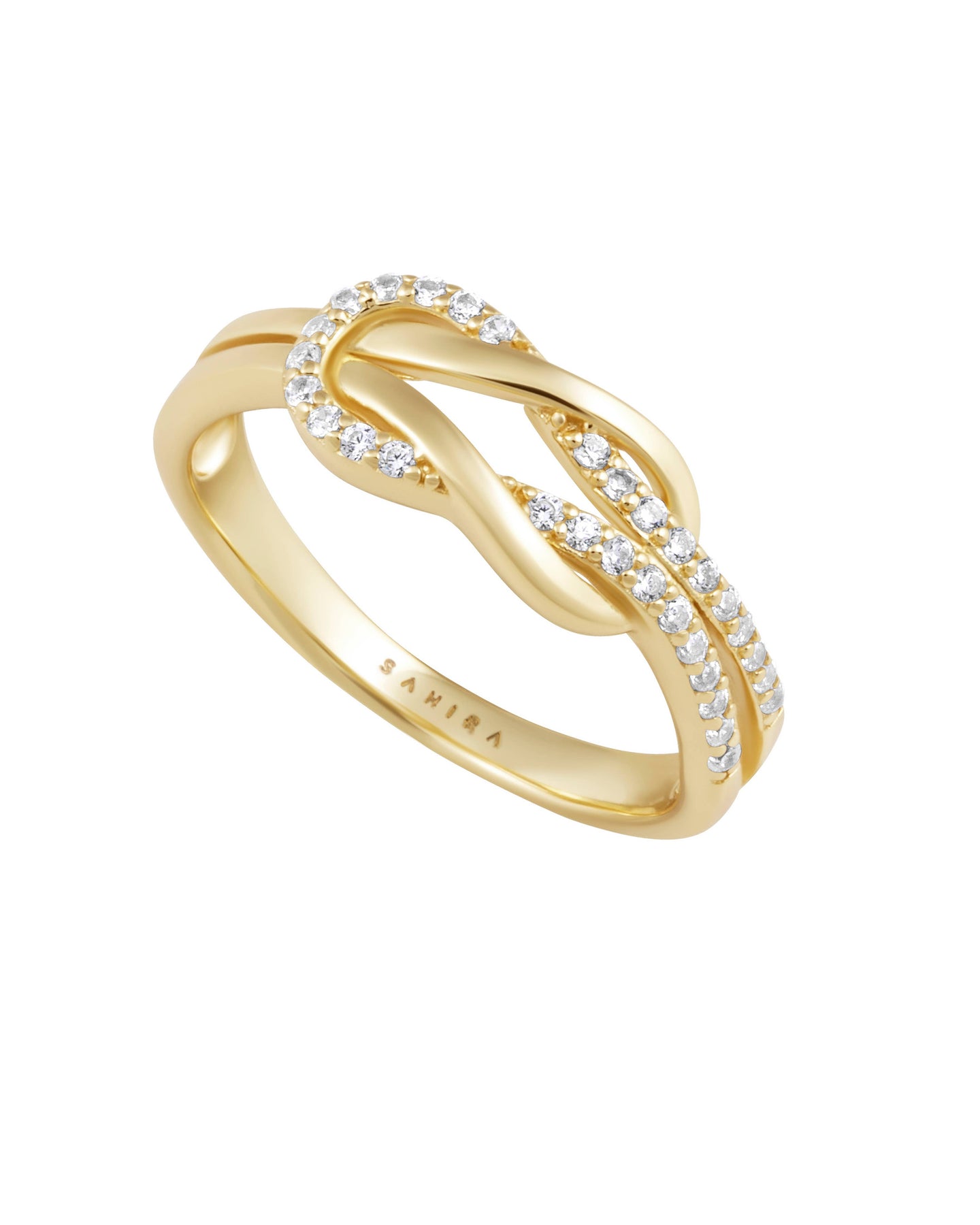 Playful yet polished, the Rylynn Knot Ring features a shimmering CZ knot design that symbolizes connection and style all in one. It’s a fun statement piece that still feels refined enough for daily wear.
