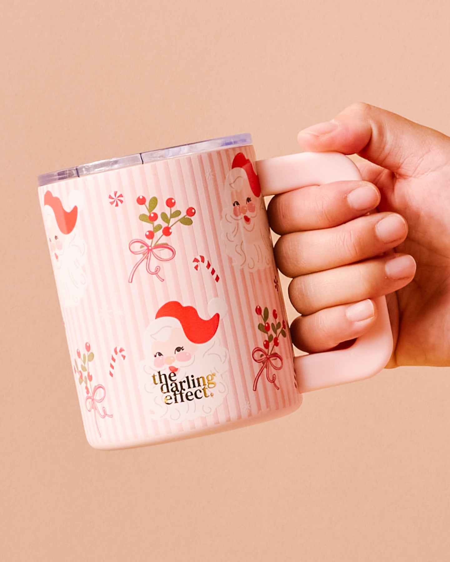 Sip your cocoa in style with this festive 14 oz insulated mug featuring our Holly Jolly Santa design. With a comfy handle and secure lid, it's triple-walled to keep drinks hot and spirits high—whether you're at home or on the go.