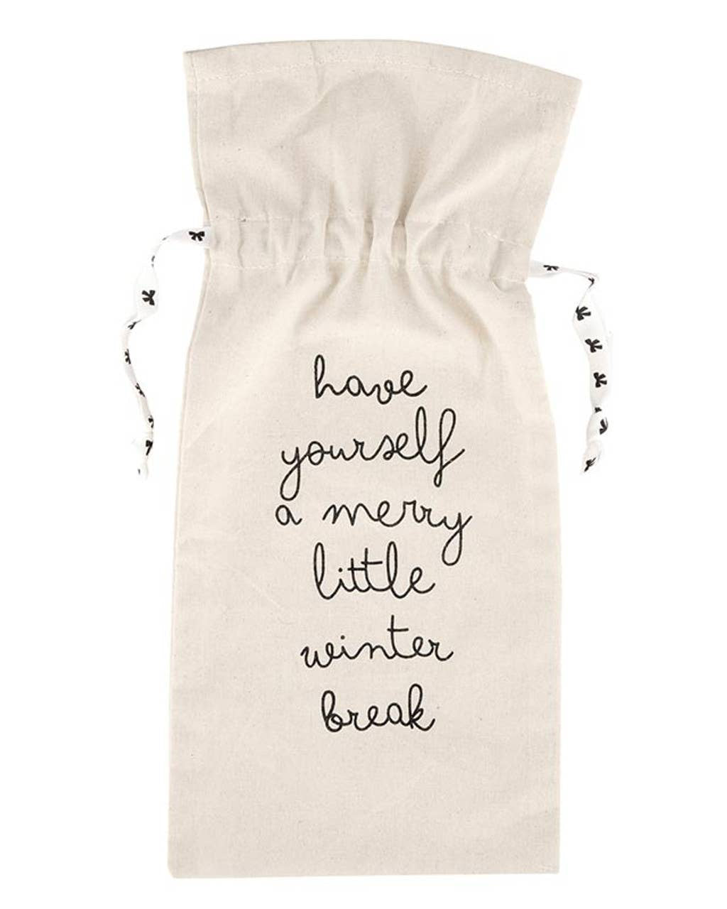 Wrap your favorite bottle in cozy charm with this cotton canvas wine bag! A playful presentation for holiday gifting, dinner parties, or a wintery wine night in.