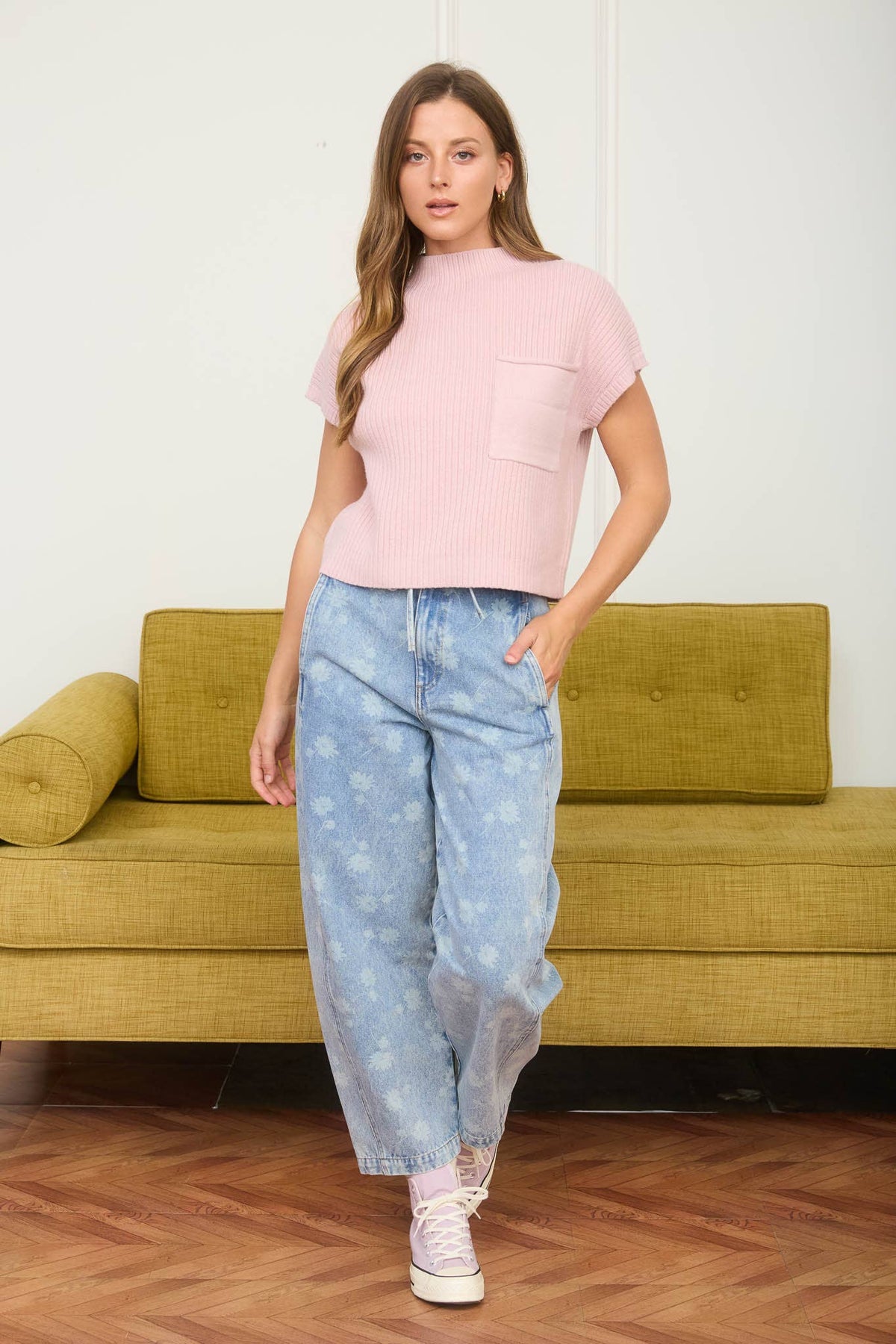 Shelley Mock Neck Short Sleeve Knit Sweater - Pink
