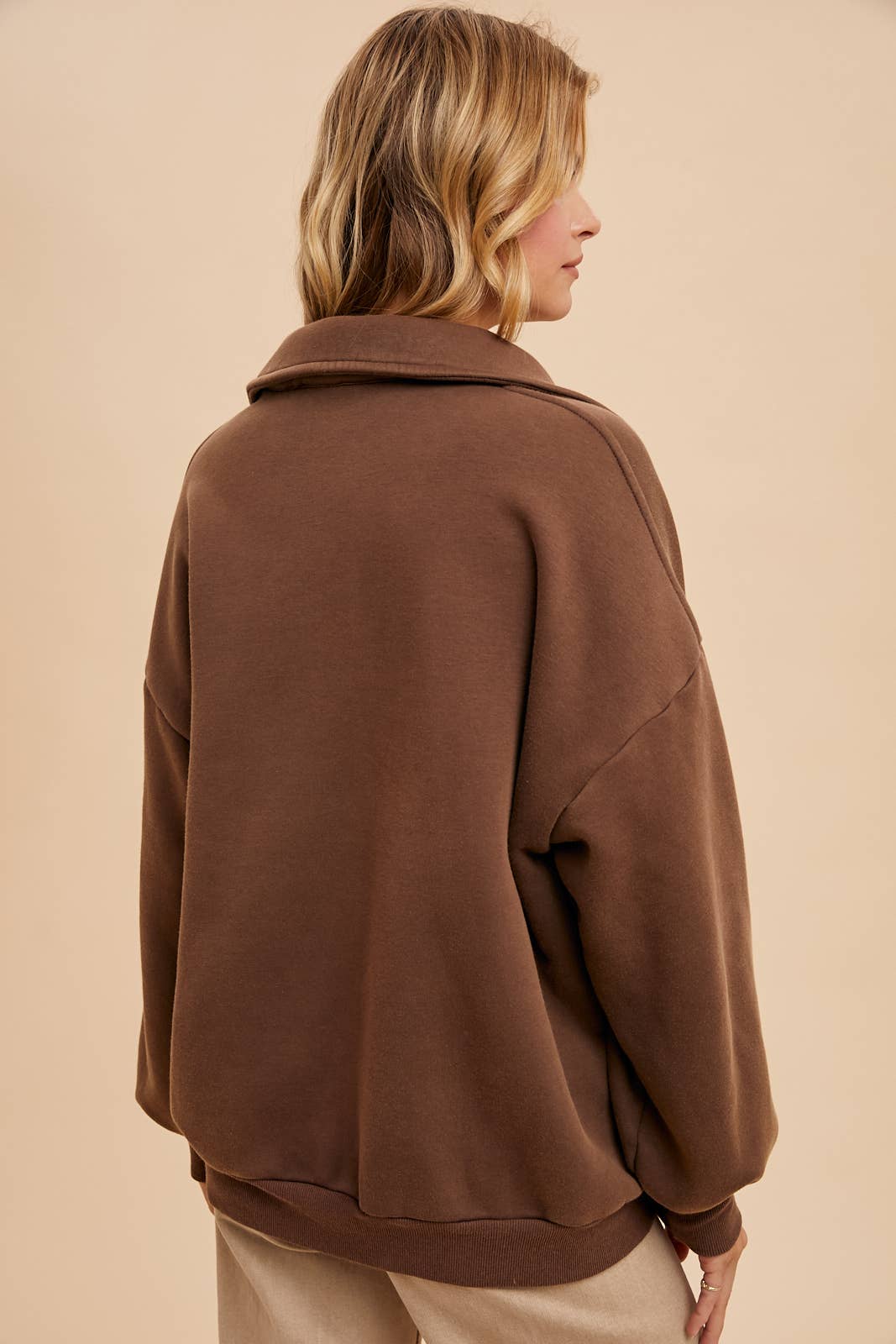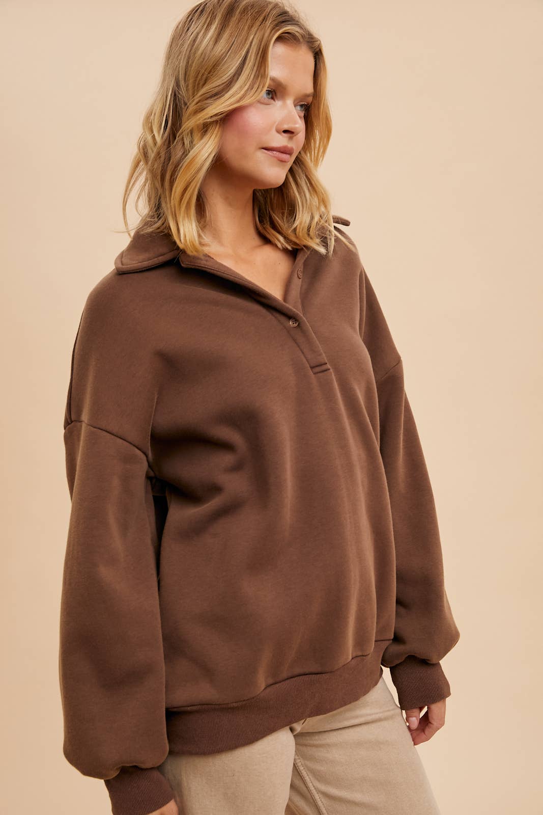 Meet your new favorite throw-on-and-go layer. The Ada Polo Pullover is cozy, casual, and effortlessly cool with a vintage-inspired mineral wash and ultra-soft fleece lining. Its oversized fit and relaxed silhouette make it perfect for laid-back days, whether you're lounging, layering, or running weekend errands.
