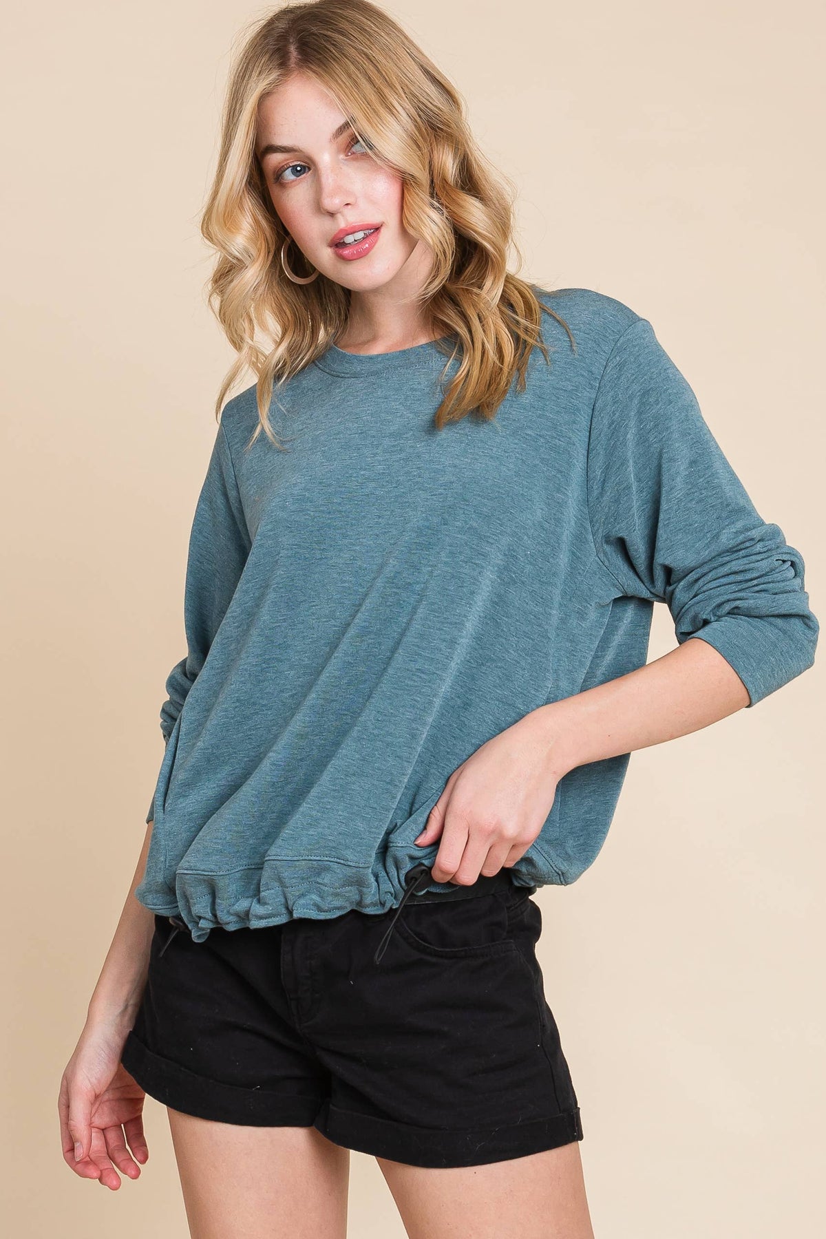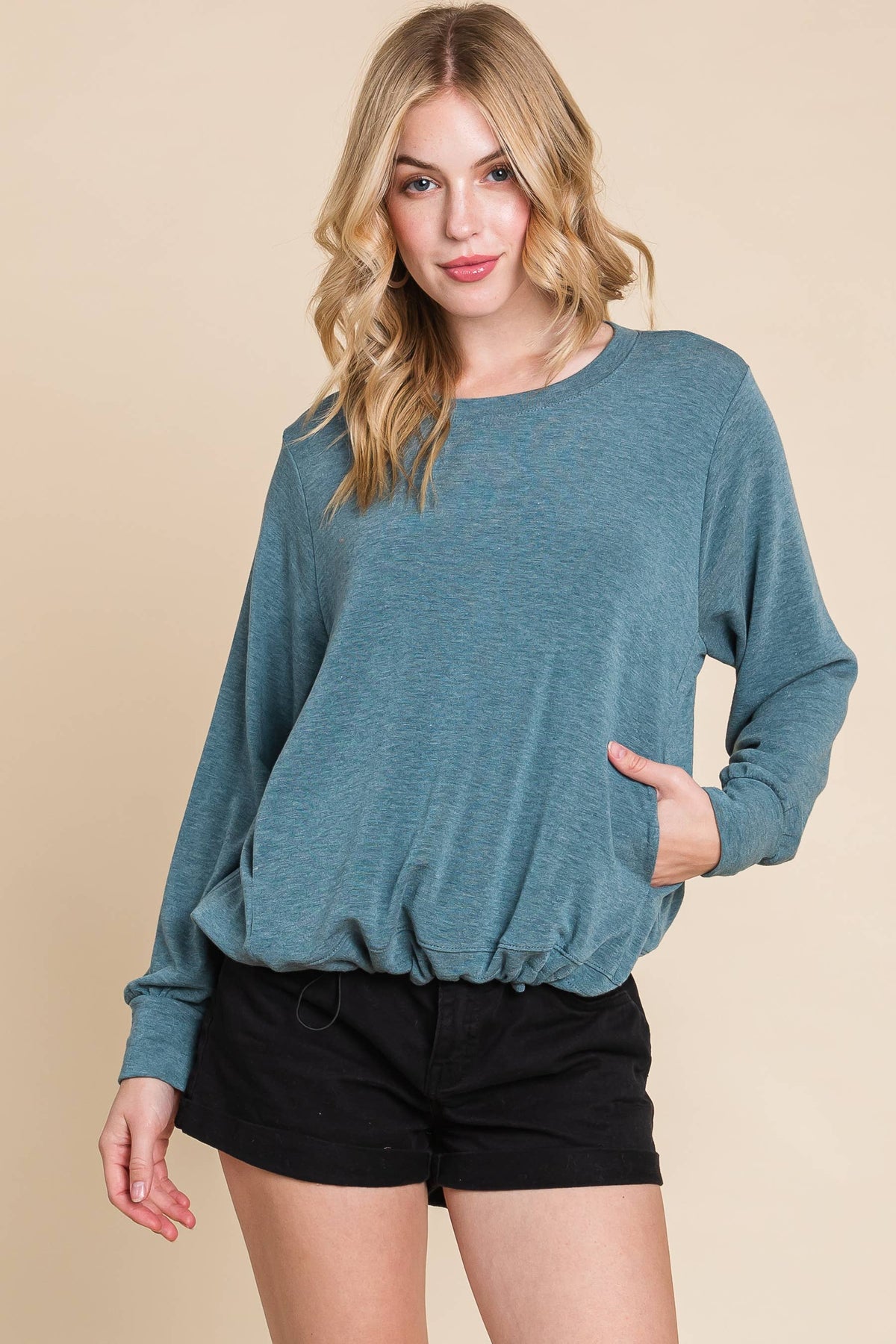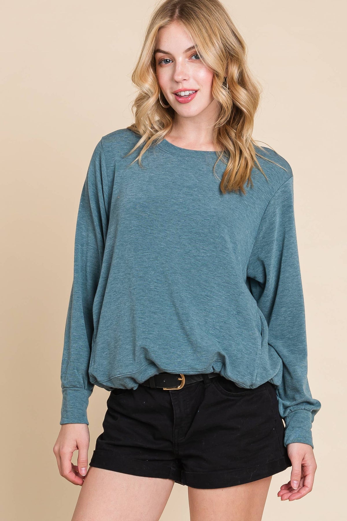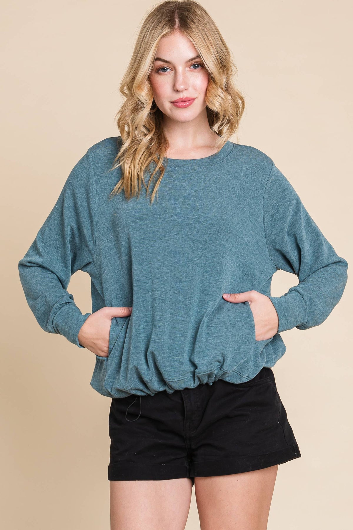 Introducing the Eleanor—your new favorite top that actually gets you. Slip into this relaxed-fit long sleeve and enjoy the freedom to move without the fuss. The adjustable waist means you can customize your look depending on your mood, and those handy side pockets? They're there when you need them most. Effortless, this is the piece you'll reach for again and again.
