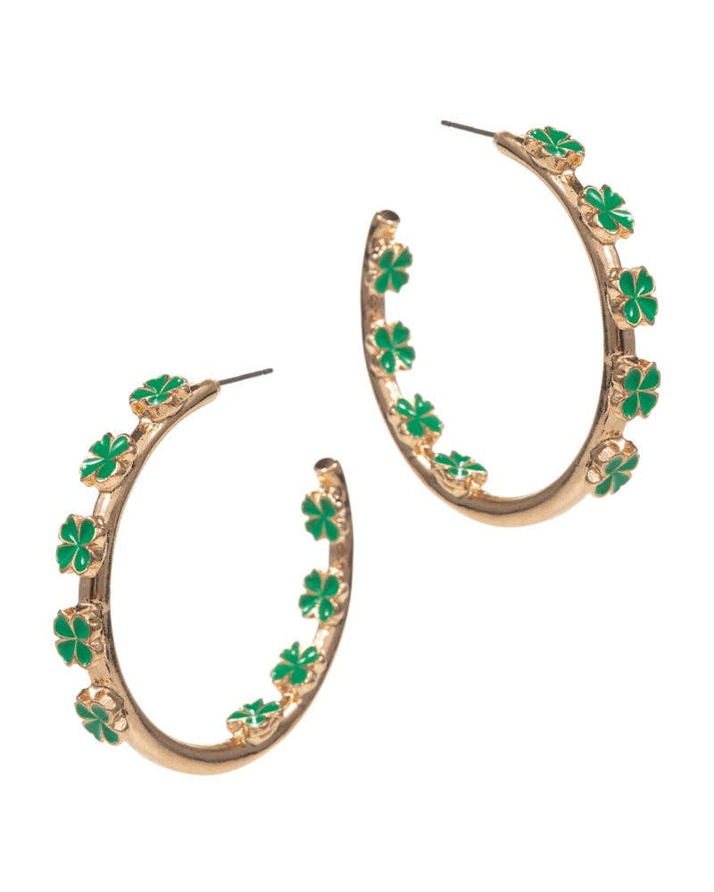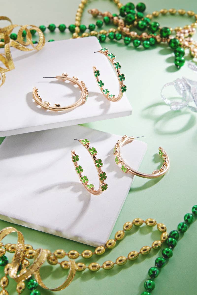 Bright and lucky with a polished finish, these shamrock enamel hoop earrings bring festive flair to your jewelry collection. The glossy green and light green enamel adds dimension and shine, while the classic hoop shape keeps them easy and comfortable to wear.