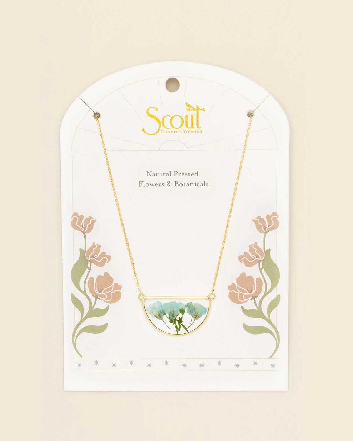 Wild blooms preserved to wear as lasting treasures of beauty; each piece holds a moment in nature to carry with you. Each necklace features natural, pressed flowers sealed with 14K gold dipped accents.