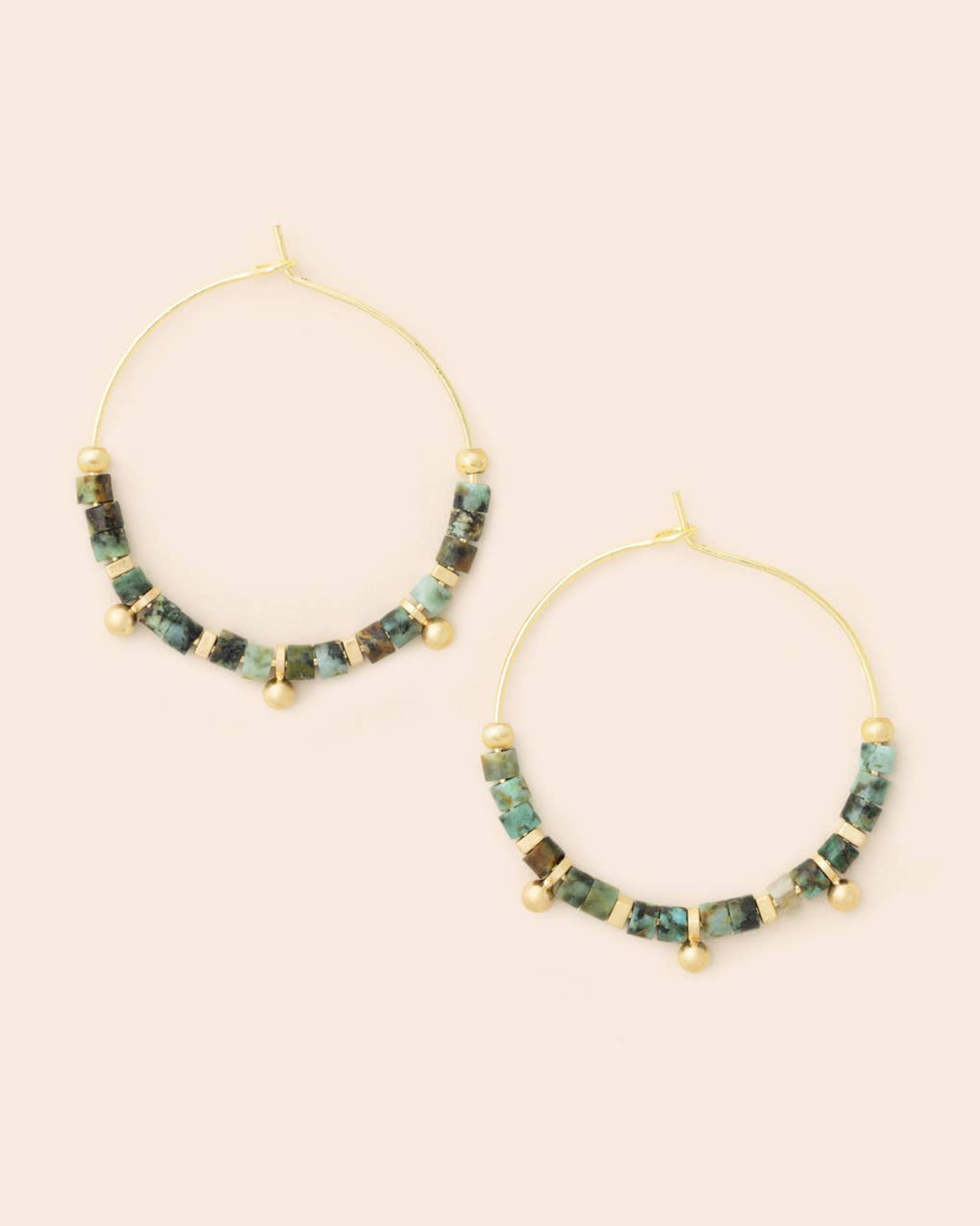 Fresh, earthy, and full of intention. These disc-style hoops feature African Turquoise—known as the Stone of Transformation—for a grounded look with uplifting energy.