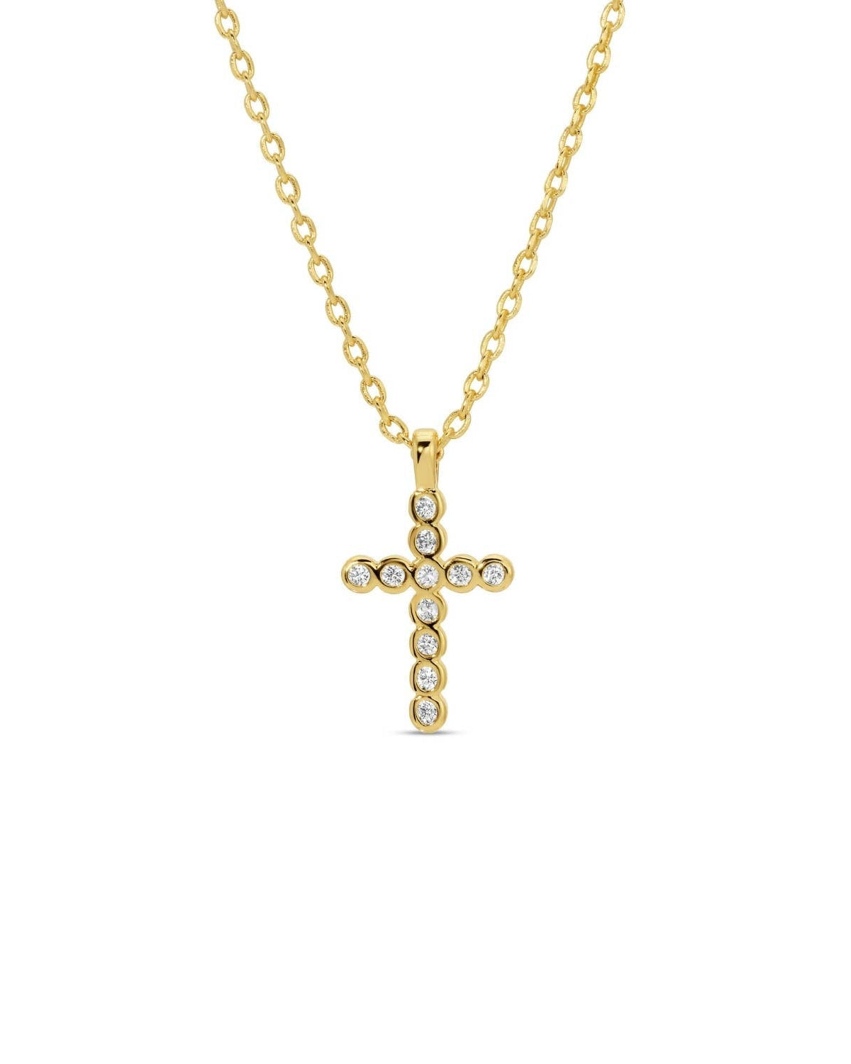 A shimmering twist on a timeless symbol. This delicate necklace features a CZ-encrusted cross suspended from a dainty link chain with a stylish front toggle clasp. It's elegant enough for special occasions and simple enough for every day.