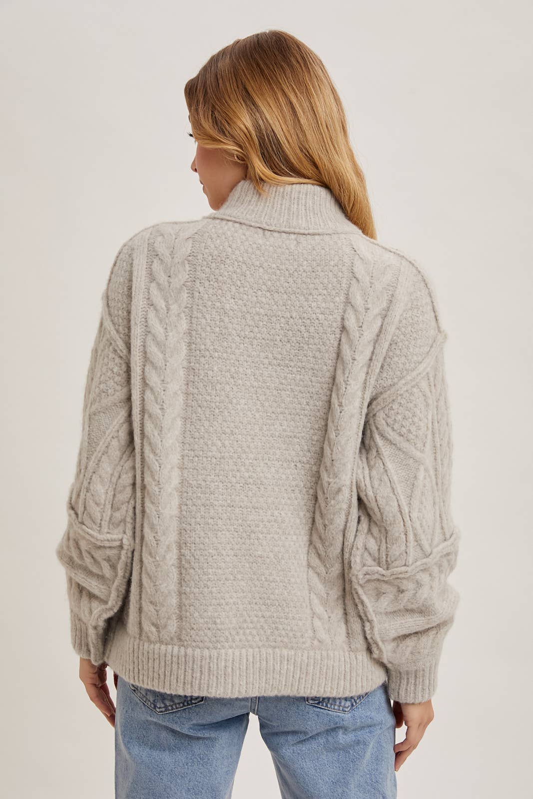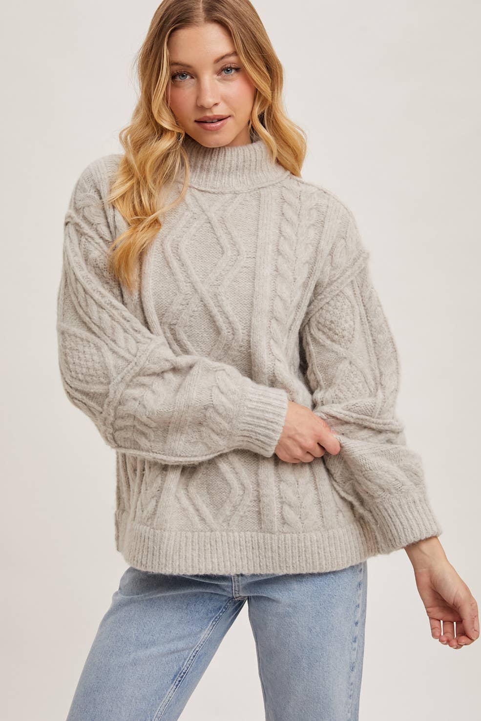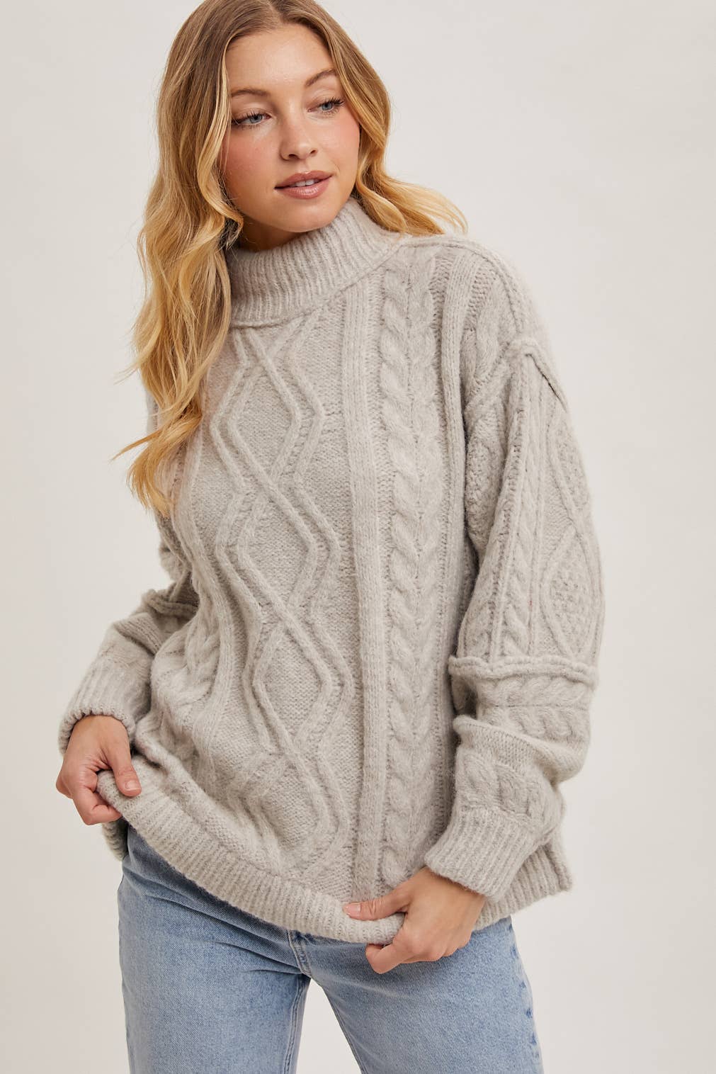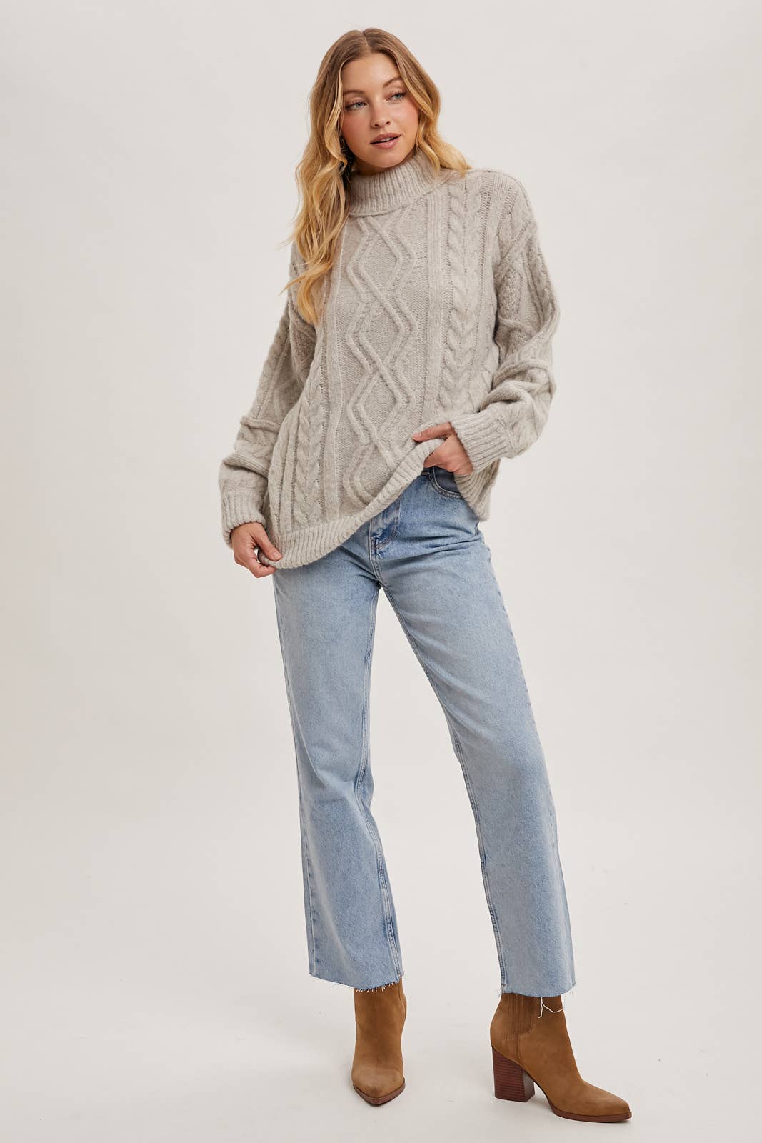 Janelle Turtleneck Cable Knit Sweater - Latte